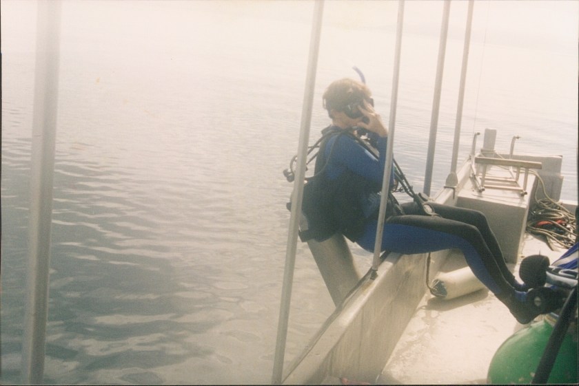Entering the water backwards is tricky